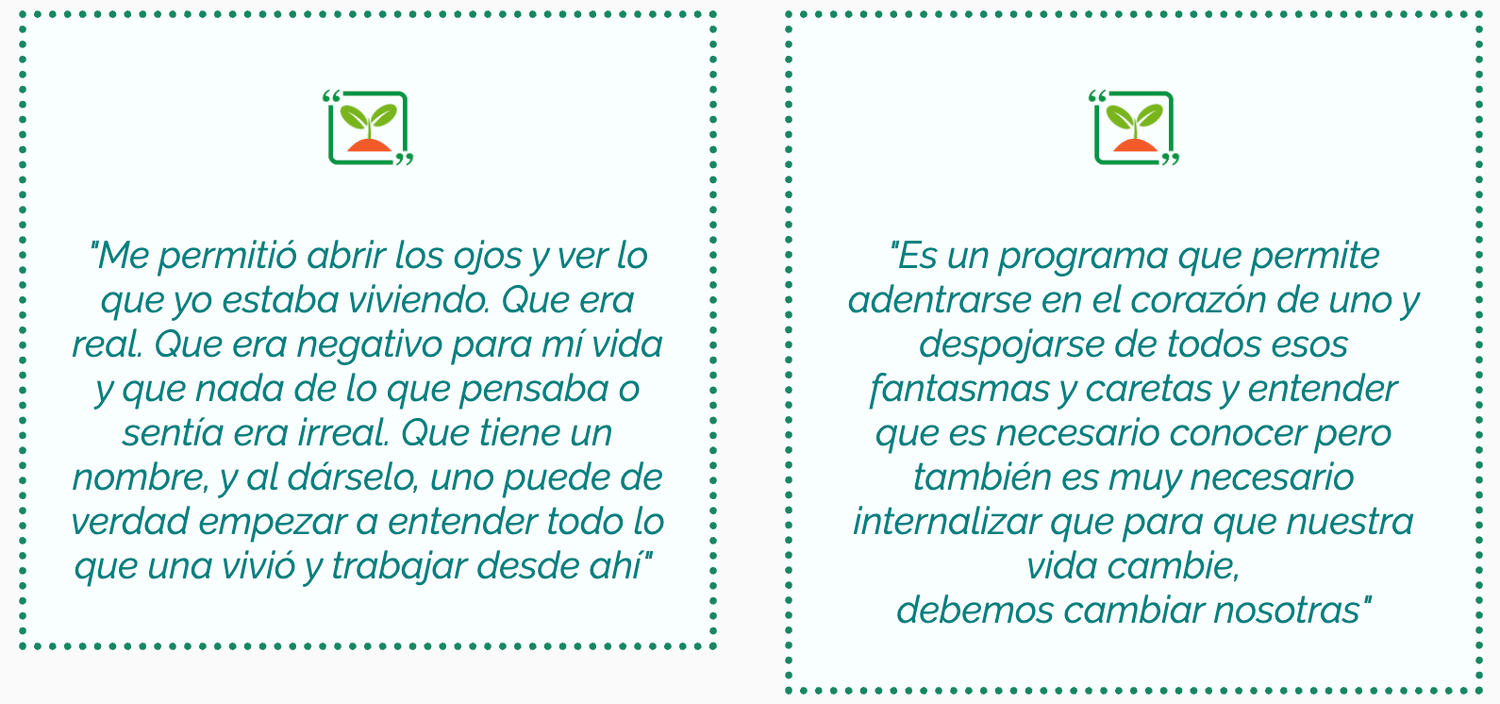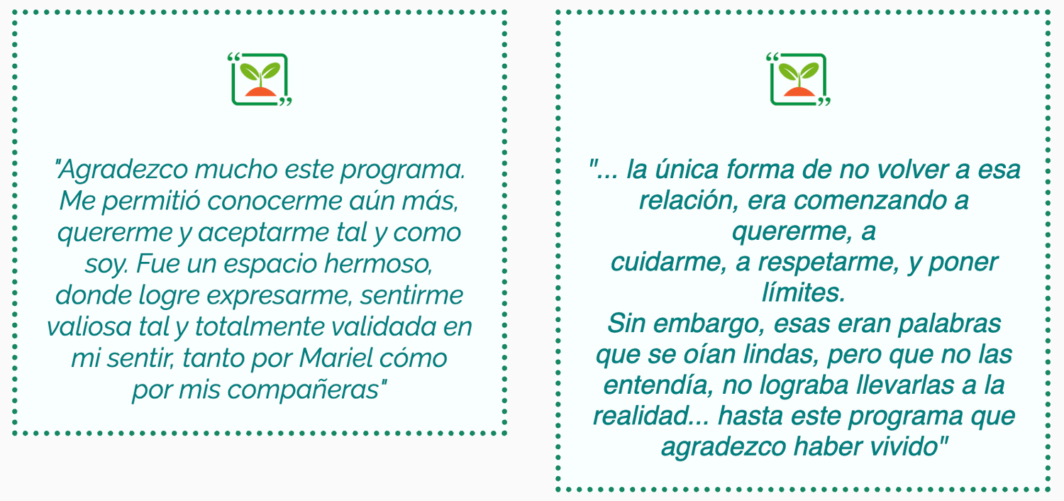 "Me gusta sentir que ahora tengo más herramientas para enfrentar los pensamientos que me debilitan. Compartir mi historia con otras mujeres y conocerlas fue muy enriquecedor "